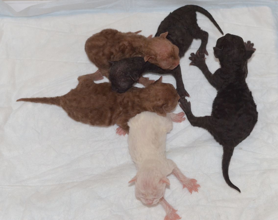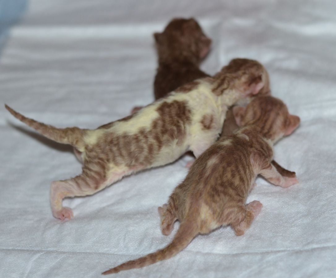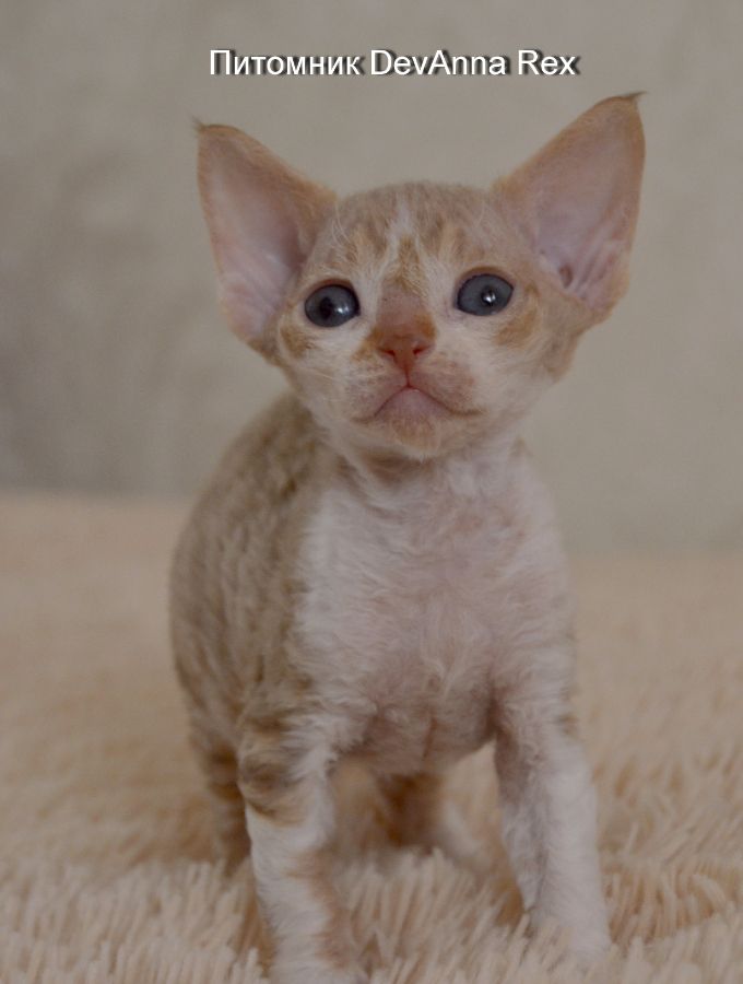 09.08. 2018 от кошечки (Нюши) Nyusha DevAnna Rex , родились прекрасные малыши. Красная девочка, белый мальчик, и белая девочка (голубоглазая) . Белая девочка остаётся в питомнике. Красная девочки и белый мальчик открыты для резерва!