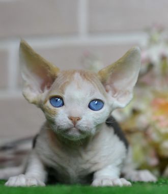 Есть котята, на которых смотришь — и понимаешь: это “звезда”. Её глубокие голубые глаза буквально покоряют с первого взгляда и цепляют навсегда. Такой эффект встречается редко, а в сочетании с ярким породным типом Devon Rex — это действительно премиальная девочка, “дорого”.
